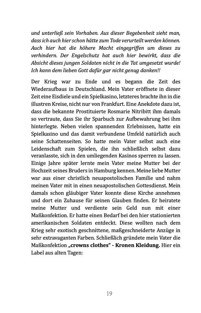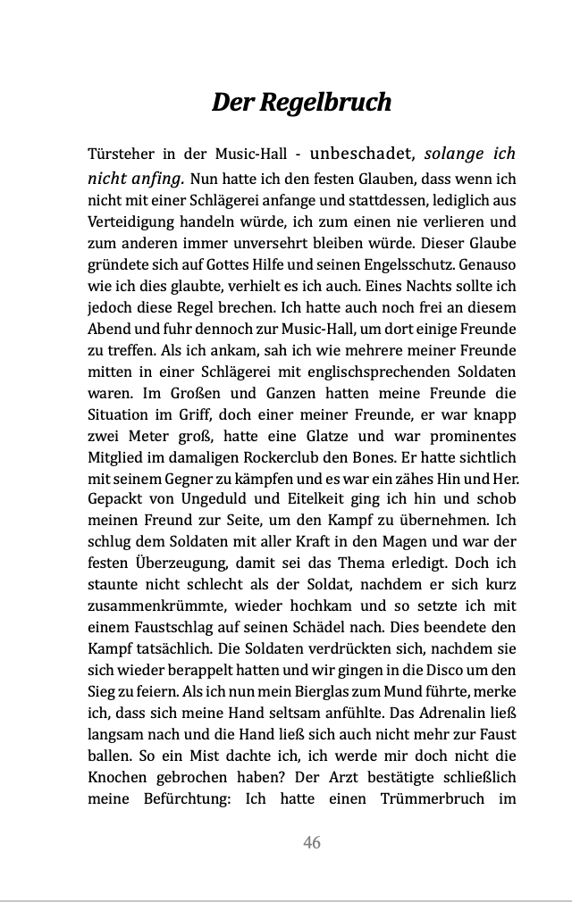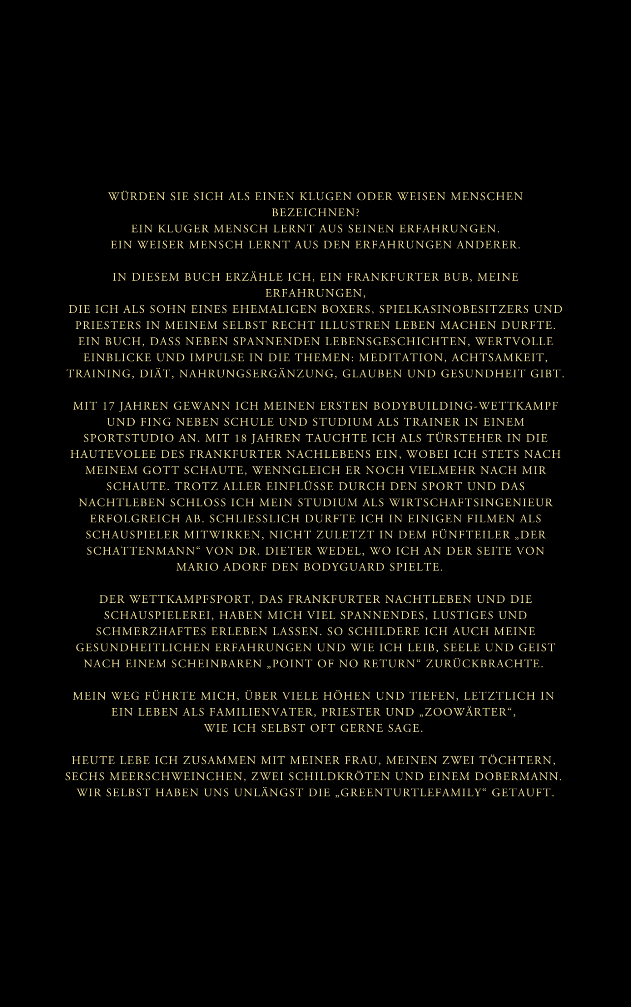 buch leseprobe Viele Spaß mit dem neuen Buch!Veröffentlichung im Januar 2022! GESCHRIEBEN VOM PAPA DER GREENTURTLEFAMILY 🙂 Schattenmann mit Glatze im KnieEin Frankfurter Bub Bodybuilder, Türsteher, Schauspieler, Wirtschaftsingenieur, Familienvater, Priester und Zoowärter mit Dobermann.Erfahrungen und wie ich doch zurück kam.1. Auflage 2022Copyright Matthias Gratkowski Ich hoffe Ihr hattet viel Spaß mit einigen Auszügen aus dem neuen Buch! GESCHRIEBEN VOM PAPA DER GREENTURTLEFAMILY 🙂 Schattenmann mit Glatze im KnieEin Frankfurter BubBodybuilder, Türsteher, Schauspieler, Wirtschaftsingenieur, Familienvater, Priester und Zoowärter mit Dobermann.Erfahrungen und wie ich doch zurück kam.1. Auflage 2022Copyright Matthias Gratkowski